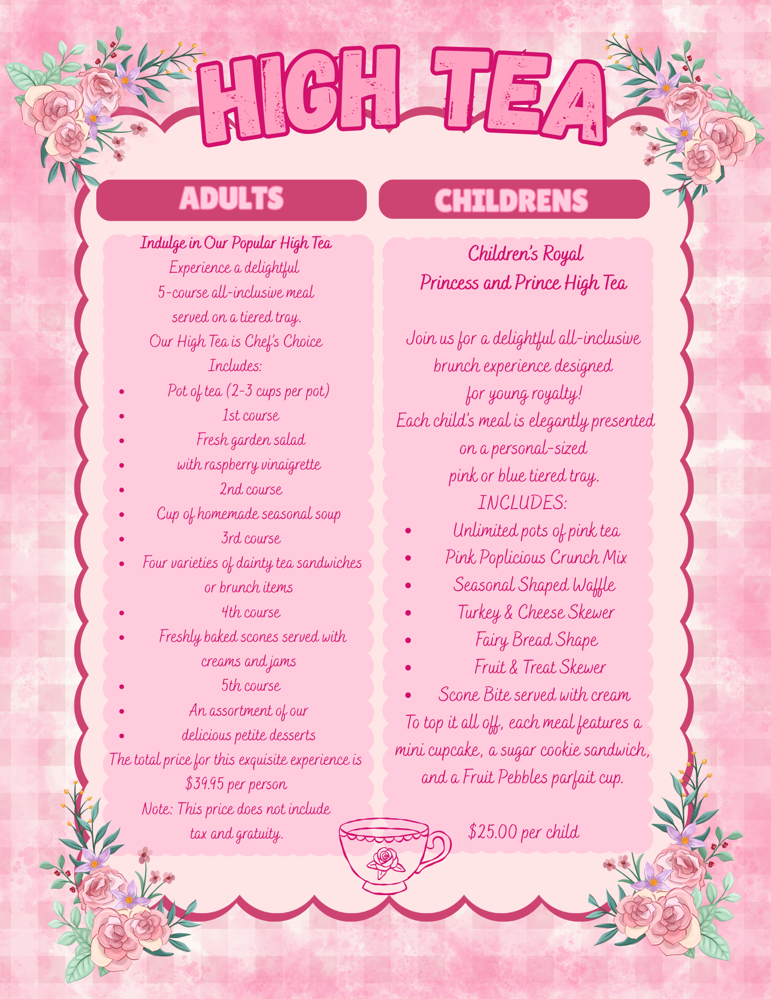An ultimate tealicious tea party experience for sweet & stylish young ladies ages 4 to 14 and guests of all ages awaits!!